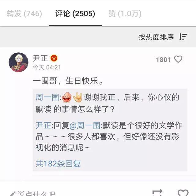 而且之前早有傳言,說是尹正帶著《默讀》去找過周一圍,可是被周一圍給拒絕了。