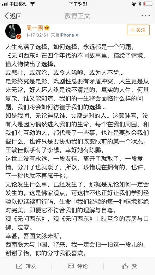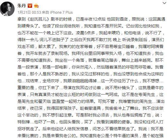 這要是兩位單身,或許還好一點(diǎn),關(guān)鍵是這可是兩個(gè)為人父母的,說出這么高山流水覓知音的話,確實(shí)不合適。不但如此,周一圍的夫人,朱丹在微博里一直為老公賣力宣傳。