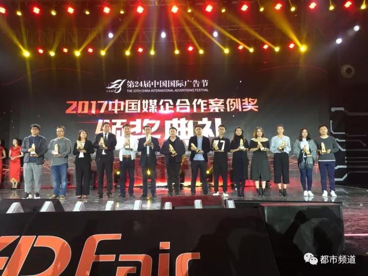 在2017中國(guó)廣告長(zhǎng)城獎(jiǎng)·廣告主獎(jiǎng)之媒企合作案例獎(jiǎng)?lì)C獎(jiǎng)現(xiàn)場(chǎng),河南都市頻道榮獲6項(xiàng)營(yíng)銷大獎(jiǎng)。都市頻道團(tuán)隊(duì)?wèi){借廣告與節(jié)目的融合、專業(yè)的服務(wù)水準(zhǔn)、勇于創(chuàng)新?tīng)I(yíng)銷策劃能力,獲得“中國(guó)長(zhǎng)城獎(jiǎng)2017年度金伙伴獎(jiǎng)”。