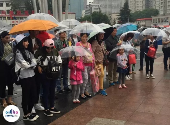 976給現(xiàn)場觀眾發(fā)放雨傘
