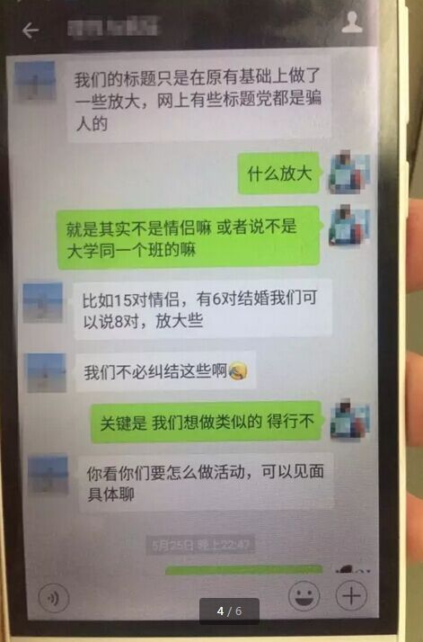 面對記者對“一個班15對情侶”提出的諸多疑問,對方直接回答,“媒體報道說有,就一定是這么回事。”“我們不必再糾結(jié)這些?!彼髞沓姓J有些標(biāo)題在原有的基礎(chǔ)上做了一些放大,“比如15對情侶,有6對結(jié)婚我們可以說8對,放大些?!?/font>