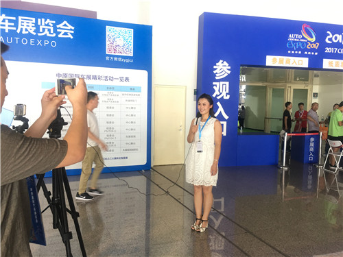 2017第六屆中原國(guó)際汽車展覽會(huì)開幕首日,映象主播十三妹已經(jīng)達(dá)到現(xiàn)場(chǎng)。