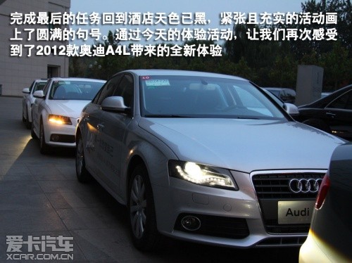結語:在此次活動中,讓我們再次感受到了2012款奧迪A4L帶來的全新體驗,尤其是一些實用性配置的增加,讓駕駛者和乘坐者充分感受到了A4L帶來的舒適以及便捷。此外,2012款奧迪A4L在價格不變的基礎上增加了這些實用性配置,從而進一步提升了其性價比。