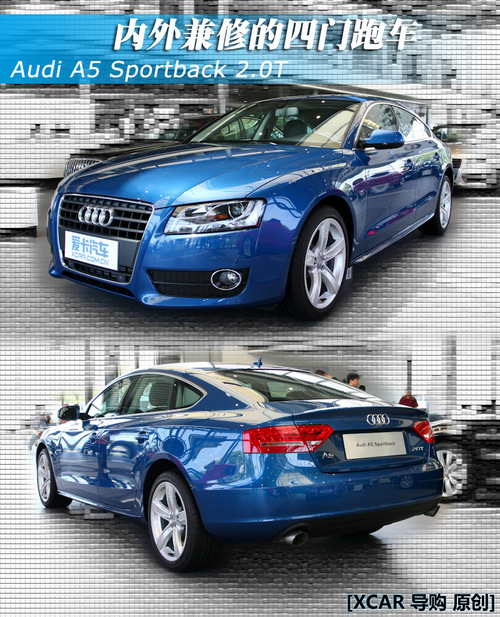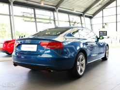 5月23日,奧迪A5/S5全系共10款車型正式在全國上市,其中包括全新的A5/S5 Cabriolet敞篷轎跑車、A5/S5 Sportback五門轎跑車和全新的A5/S5 Coupe雙門轎跑車,以及充滿動感個性的A5 Coupe 2.0T風尚版。今天我們在4S店拍攝到的這輛藍色的A5為售價52.8萬的Sportback 2.0T車型。