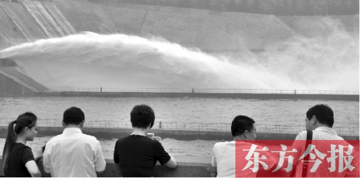 昨天,東方今報記者在濟源市小浪底庫區(qū)看到,9時一到,一條水龍從小浪底大壩口噴涌而出,驚濤拍岸。河水墜入河道濺起的細(xì)小水滴,撲打在附近游人的臉上,遠(yuǎn)遠(yuǎn)地就能感受到陣陣涼意。