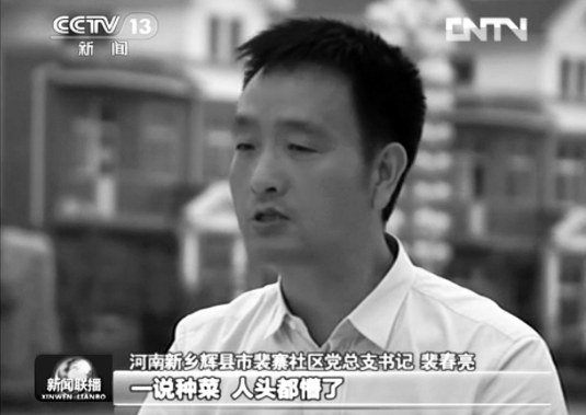 東方今報(bào)新鄉(xiāng)訊 昨晚,央視新聞聯(lián)播“尋找最美村官”欄目以《裴春亮:鄉(xiāng)親們不富誓不休》為題,用時(shí)3分21秒,報(bào)道了輝縣市裴寨村社區(qū)黨委總支書(shū)記裴春亮的先進(jìn)事跡(如圖)。