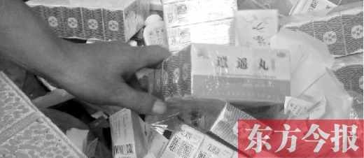 “這是治感冒的,這是治痛風的……這還有膏藥、碘酒、酒精啥的?!敝芟壬灰恢附o東方今報記者看。