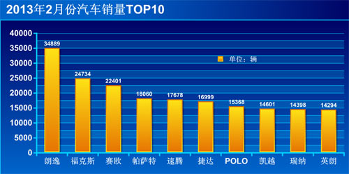 2013年2月份銷量:34889萬輛