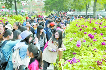 4月4日,在洛陽(yáng)王城公園,來(lái)自四面八方的游客在觀賞盛開(kāi)的牡丹花。4月5日,為期1個(gè)月的第30屆洛陽(yáng)牡丹文化節(jié)將隆重開(kāi)幕,洛陽(yáng)市各大公園的各色牡丹也將陸續(xù)綻放,中外游客盡可以感受古都洛陽(yáng)的今日風(fēng)采,觀賞洛陽(yáng)牡丹的嬌艷芳容。 河南日?qǐng)?bào)農(nóng)村版記者 楊遠(yuǎn)高 攝