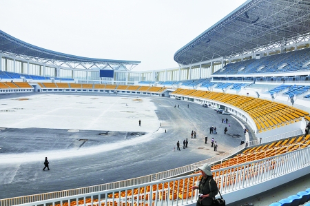 農(nóng)運會主體育場占地406畝,外觀似糧倉,寓意南陽為中州糧倉,外面全部用金黃色的鋁格柵裝飾,象征豐收。主體育場內(nèi)有3.5萬個座位,設(shè)一個標(biāo)準(zhǔn)足球場、8條400米塑膠跑道、10條100米塑膠跑道,場內(nèi)還可進(jìn)行所有投擲項目的比賽。