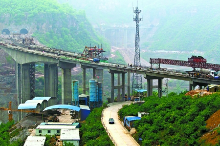 4月24日,林(州)長(治)高速公路林州太行大峽谷段正在緊張施工。該段工程全長2.91公里,施工線路中有3座大橋、3條隧道,地質(zhì)條件復雜,施工難度大。承擔施工任務的中鐵大橋局的建設者們克服種種困難,現(xiàn)已基本完成主體工程建設,確保了今年11月份通車。