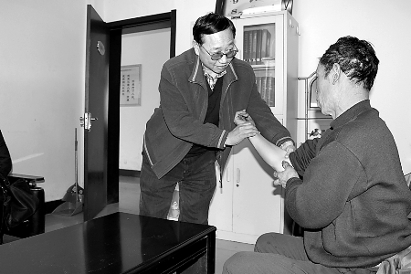 義馬市副市長程相渠關(guān)心地查看信訪群眾喬馬強的傷情。