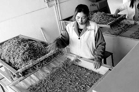 4月23日,在信陽市固始縣某茶廠,員工正在制作今年的新茶。