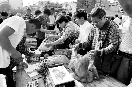 在現(xiàn)場(chǎng),管城區(qū)商務(wù)局的工作人員忙個(gè)不停。該局工會(huì)主席李國占說,不到6點(diǎn)半,就有很多市民提著籃子來買菜,7點(diǎn)鐘開始賣菜時(shí),已經(jīng)有200多人在排隊(duì)。