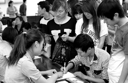 5月8日,在2012年民營企業(yè)招聘周活動(dòng)武陟縣分會(huì)場,一位求職者在填寫求職登記表。本次招聘周活動(dòng)該縣共有31家民營企業(yè)參加,涉及工種116個(gè),提供就業(yè)崗位1439個(gè)。馮小敏 張新草 攝