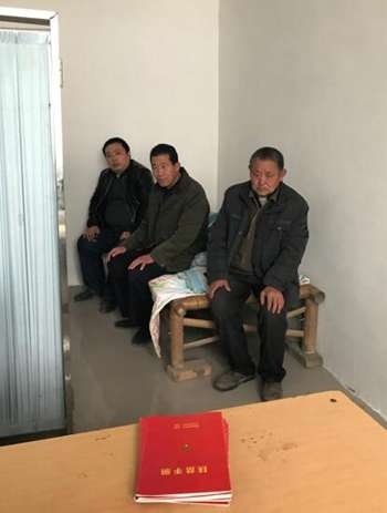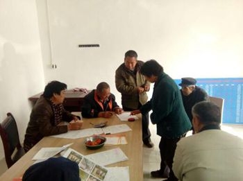 (曹紅彥(左一)生前幫村民辦理各種脫貧手續(xù))