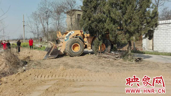 梁莊村路邊,村組干部們有的拉繩、有的撒白灰,他們正忙著號(hào)樹坑,準(zhǔn)備載行道樹呢。遠(yuǎn)處的路邊,一輛鏟車正在清理路邊的枯草。“我們要按照鎮(zhèn)黨委、政府的要求,努力實(shí)現(xiàn)村莊環(huán)境衛(wèi)生的凈綠亮美呀!”