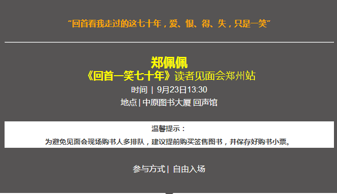鄭佩佩讀者見(jiàn)面會(huì)鄭州站