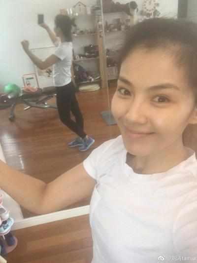照片中的她身穿白色的T恤,將頭發(fā)全部扎起,素顏而且沒有PS狀態(tài)下的劉濤臉上看上去確實有點黃!