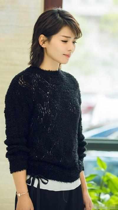 白色的內(nèi)搭+黑色鏤空毛衣,一頭凌亂美的短發(fā),側顏的劉濤安靜美好,讓人感覺很舒服!