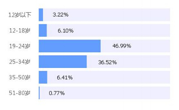 參與微博討論的網(wǎng)友中,年齡集中分布在19-34歲,共占比 83.51%,其中19-24歲占比最高,為46.99%。19-24歲為90后群體,這個群體自信張揚、充滿激情、向往自由,“世界那么大,我想去看 看”這句話在年輕群體中倍受追捧。