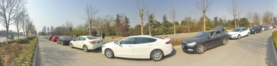 不一會(huì)兒,校門(mén)口聚集的車(chē)輛越來(lái)越多,幾乎把馬路堵成了“停車(chē)場(chǎng)”。鄭大校門(mén)口往西的馬路兩側(cè)也早已停滿了車(chē),粗略統(tǒng)計(jì)至少有上百輛,車(chē)輛排成的長(zhǎng)隊(duì)甚至一眼望不到頭。