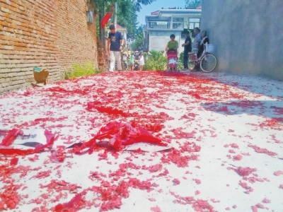 鄉(xiāng)親們?nèi)挤疟夼?,慶祝女排奪冠。