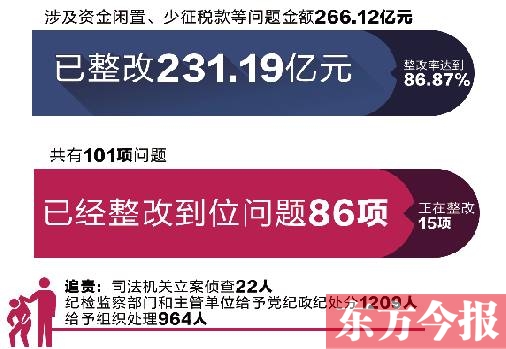 從問題金額看,審計工作報告中涉及資金閑置、少征稅款等問題金額266.12億元,已經(jīng)整改231.19億元,整改率達到86.87%。 從問題數(shù)量看,審計工作報告中共有101項問題,已經(jīng)整改到位問題86項,正在整改15項。 據(jù)悉,對于審計移送的違法違規(guī)問題,司法機關立案偵查22人,紀檢監(jiān)察部門和主管單位給予黨紀政紀處分1209人,給予組織處理964人。其中,對企業(yè)或個人騙取生活補貼資金問題,市縣監(jiān)察機關、業(yè)務主管部門在收回補貼資金1970萬元的同時,給予當事人、有關經(jīng)辦人員黨紀政紀處分299人,給予誡勉談話等組織處理219人。(記者 梁新慧)