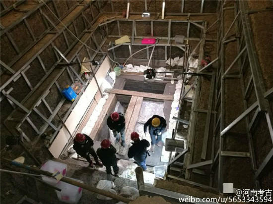 據(jù)@河南考古 微博消息,近日在河南一座古墓發(fā)掘現(xiàn)場,出土了幾只裝有“肉湯”大鼎,。