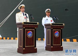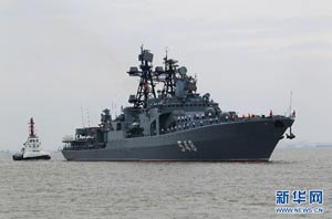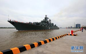 當日,參加中俄“海上聯(lián)合—2014”軍事演習的俄方艦艇陸續(xù)駛抵上海某軍港。中俄兩國海軍互鳴禮炮,中方為來訪的俄艦舉行隆重歡迎儀式。俄羅斯太平洋艦隊旗艦“瓦良格”號導(dǎo)彈巡洋艦駛?cè)胲姼蹠r,參加歡迎儀式的軍樂隊奏響歡迎曲。隨后,“快速”號驅(qū)逐艦、“潘捷列耶夫海軍上將”號大型反潛艦、“伊利姆”號中型海洋油船、“涅維爾斯科伊海軍上將”號大型登陸艦,“卡拉爾”號海洋拖船陸續(xù)駛?cè)敫劭凇_@次聯(lián)合軍事演習,中俄海軍都派出了主戰(zhàn)艦艇參加。中方參演兵力包括導(dǎo)彈驅(qū)逐艦、導(dǎo)彈護衛(wèi)艦、綜合補給艦以及導(dǎo)彈艇等水面艦艇8艘、潛艇2艘、固定翼飛機9架。俄方參演兵力包括巡洋艦、反潛艦、驅(qū)逐艦、登陸艦、油船和海洋拖船等水面艦艇6艘。此外,為執(zhí)行海上聯(lián)合解救被劫持船只、護航等特殊任務(wù),雙方還派出艦載直升機、特戰(zhàn)分隊等兵力參加此次演習。新華社記者 查春明攝