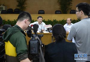 5月18日,杭州市環(huán)保局長胡偉(左)在發(fā)布會(huì)上回答記者提問。
