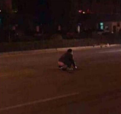 8、太丟人!男子蹲馬路中間大便被撞飛