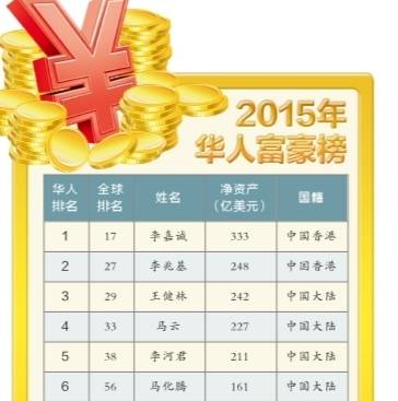 昨日《福布斯》雜志中文版發(fā)布2015華人富豪榜。李嘉誠以凈資產(chǎn)規(guī)模333億美元再次蟬聯(lián)第一;李兆基第二;王健林第三,凈資產(chǎn)達242億美元,雄霸內(nèi)地首富。河南共有4位企業(yè)家上榜,天瑞集團董事長李留法以凈資產(chǎn)規(guī)模21億美元領(lǐng)跑。