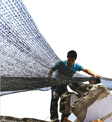 成堆的建筑垃圾高低不平,有的高達數(shù)米甚至10多米,在上面鋪防塵網并不是件容易的事。鋪防塵網的工人說,他們一天只能鋪1萬多平方米。鋪防塵網難度不小,還有很高的成本,讓人意想不到的是,竟然有人蓄意搞破壞。