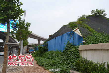 航海路西三環(huán)東北角,有一高約5米的垃圾土堆,南側(cè)用施工擋板遮擋,頂部被綠藤覆蓋,遠(yuǎn)看像一座假山。一刮風(fēng)導(dǎo)致附近小區(qū)塵土飛揚(yáng)、蚊蠅亂飛,環(huán)境惡劣。據(jù)悉,該土堆兩年無人清理,居民認(rèn)為影響鄭州形象。