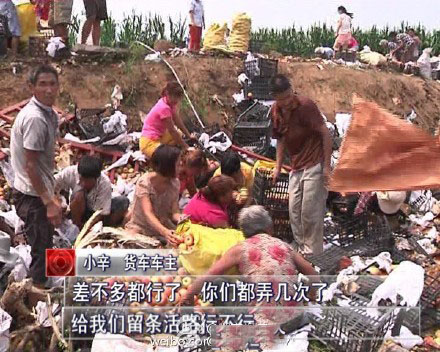 8月23日上午,辛先生駕駛的貨車在焦桐高速泌陽段發(fā)生傾翻,散落在地的20噸蘋果遭附近村民哄搶。辛先生本來以為老百姓是跑來幫忙的,沒想到一個接一個打電話,都是過來搶貨的?!安畈欢喽夹辛耍o我們留條活路行不行?”