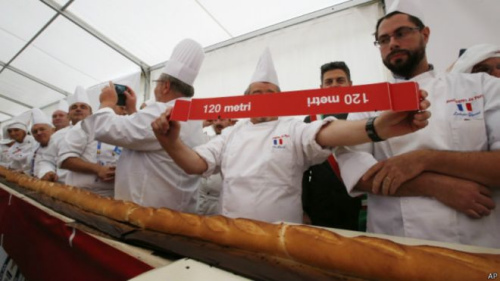 意法面包師聯(lián)手烤世界最長面包棍長達120米(組圖)