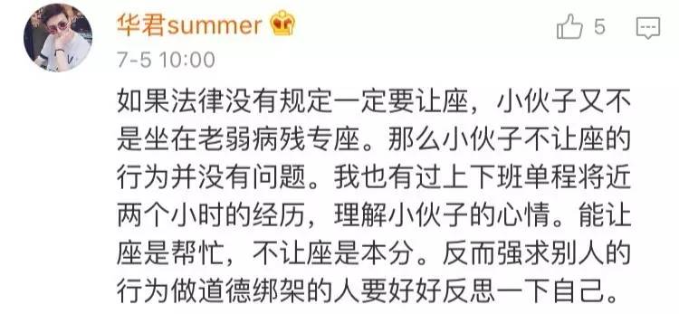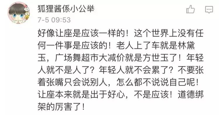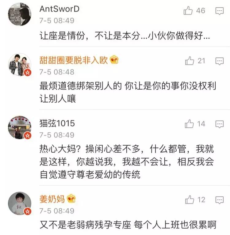 然而大多數(shù)網(wǎng)友都支持小伙的做法,上班族也很累,年輕人也有體力透支的時(shí)候,不應(yīng)把“讓座”當(dāng)成一種道德綁架。