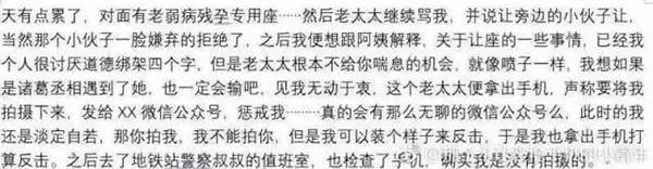前段時(shí)間,地鐵上一90后女孩因?yàn)樯砥跊]有給大媽讓座,大媽就諷刺女孩沒素質(zhì),不懂得尊老愛幼。女孩因?yàn)樯砥谛那椴缓?,就反駁了對(duì)方幾句。