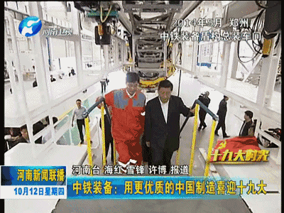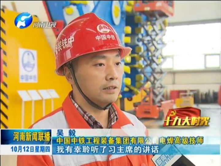 中國(guó)共產(chǎn)黨第十九次全國(guó)代表大會(huì)即將召開,今天起,河南新聞聯(lián)播推出《十九大時(shí)光》專欄,和您一起走進(jìn)革命老區(qū)、田間地頭、工礦企業(yè)、街道社區(qū),傾聽基層干部群眾愛黨愛國(guó)的熱切心聲,感受人們建設(shè)出彩中原的火熱場(chǎng)景,聚焦十九大召開的歷史性時(shí)刻,共度這段特殊而又美好的時(shí)光。今天播出第一集《中鐵裝備:用更優(yōu)質(zhì)的中國(guó)制造喜迎十九大》。