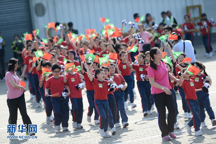 4月30日,孩子們在澳門機場迎接大熊貓。當(dāng)日16時許,中央政府贈送澳門的新一對大熊貓運抵澳門,澳門特區(qū)政府行政法務(wù)司司長陳海帆等官員及部分少年兒童在機場迎接。大熊貓經(jīng)檢疫人員檢查后在運輸籠中向前來接機的人們短暫亮相。目前它們身體狀況良好,隨后將前往金像農(nóng)場進(jìn)行30天隔離檢疫。新華社記者張金加攝
