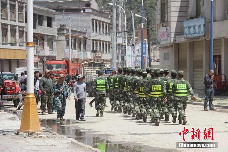 5月12日下午15點05分,尼泊爾再次發(fā)生里氏7.5級地震,吉隆方向震感強烈。地震發(fā)生后,機動支隊二大隊立刻組織22人的救助小組趕赴幫興村進行救援,挨家挨戶開展搜救,并轉(zhuǎn)移和安撫受災群眾。在吉隆鎮(zhèn)街面擔負巡邏任務(wù)的官兵成功從救出1名受傷群眾,并及時將其送往醫(yī)療點進行醫(yī)治。目前,大隊官兵正繼續(xù)對附近村莊進行排查。中新社發(fā) 楊鴻輝 攝