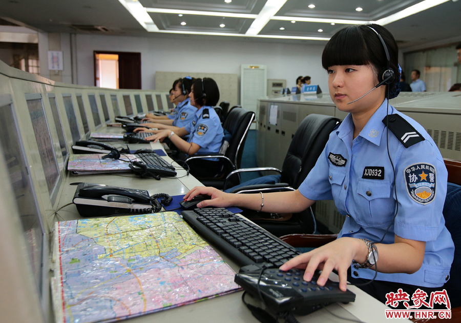 鄭州110指揮中心內(nèi),平均每天接警1萬起,如今天氣比較熱,最高時將達到一萬兩千起