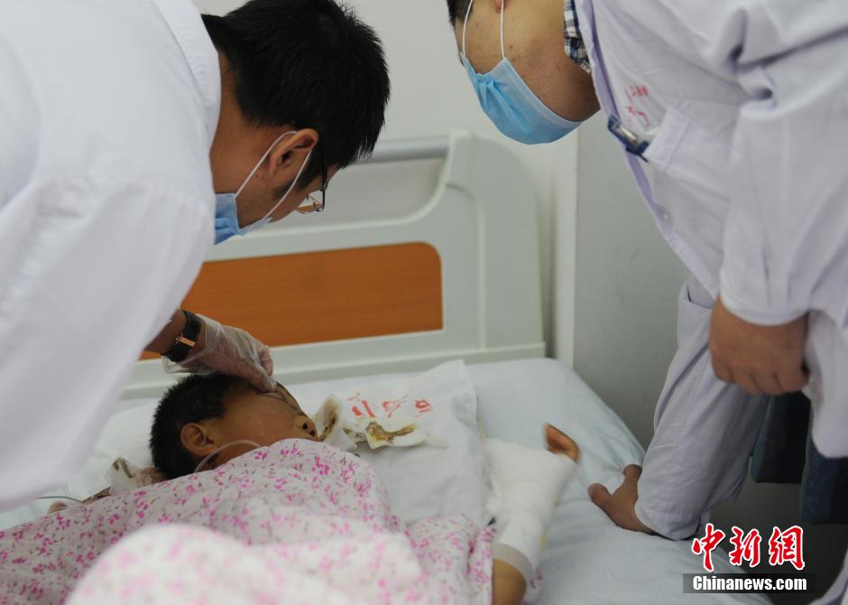 10月13日,12歲的朱某正在吉林大學(xué)第二醫(yī)院接受治療。據(jù)其家人介紹,10月11日,朱某獨自在家,遭同村村民王某挖出雙眼,行兇者還點燃了他家的房子,朱某靠裝死逃過一劫。王某事后自殺。目前雖經(jīng)手術(shù)治療,但朱某右眼視力已無恢復(fù)的可能,左眼亦不樂觀。警方正對此案進行調(diào)查。中新社記者 張瑤 攝