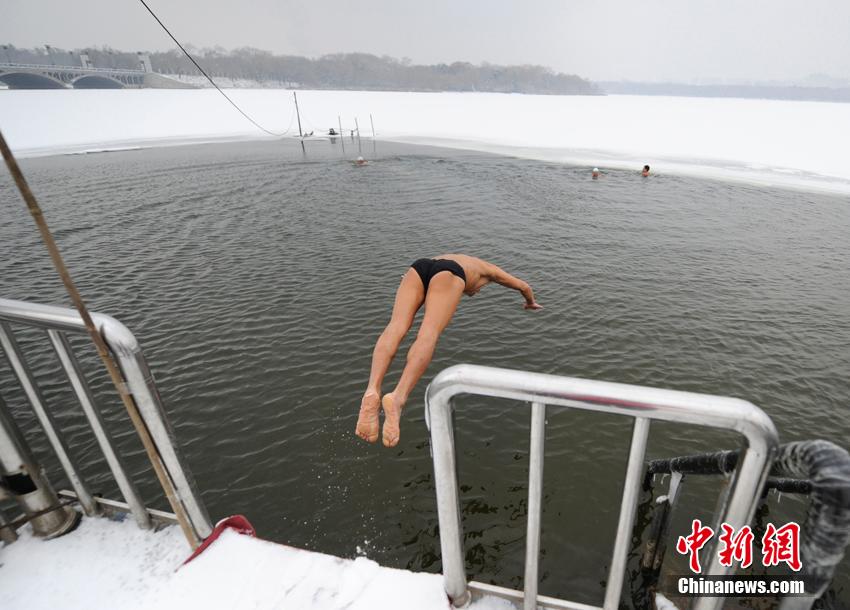 12月2日,長春市民在南湖公園冬泳。一場入冬以來最大規(guī)模的降雪過后,長春市氣溫已達零下15攝氏度,但對于冬泳愛好者來說,這恰是他們享受冬季快樂的開始。 張瑤 攝