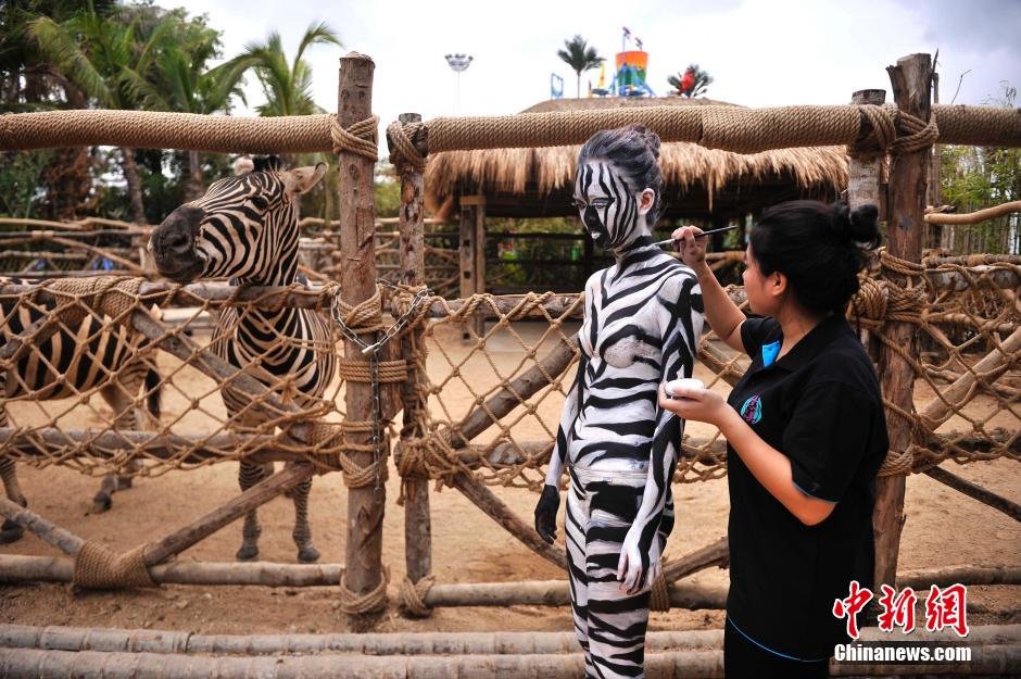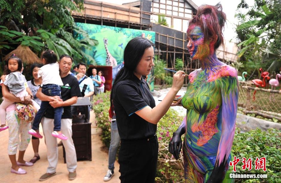 據(jù)悉,三亞彩色動(dòng)物園舉辦此次美女人體彩繪活動(dòng),旨在傳播愛(ài)護(hù)動(dòng)物、尊重生命以及人與動(dòng)物和諧共處的理念,讓更多的人了解并參與到保護(hù)動(dòng)物的隊(duì)伍中來(lái)。 陳超 攝
