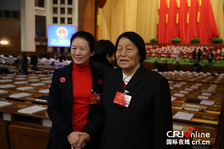 女人大代表代表申紀(jì)蘭出席全國(guó)人代會(huì)(右) 攝影:鄧晨曦