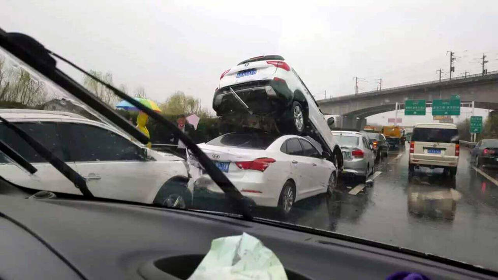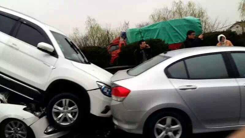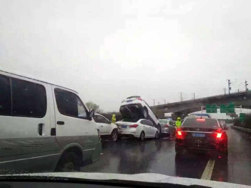 3月8日早上,受寒潮影響,南京雨水不停,寧馬高速南京方向的板橋附近,發(fā)生九車連環(huán)相撞事故,其中一輛SUV被后面追尾的轎車完全頂起,造成道路擁堵。目前,事故原因交警仍在調查中。