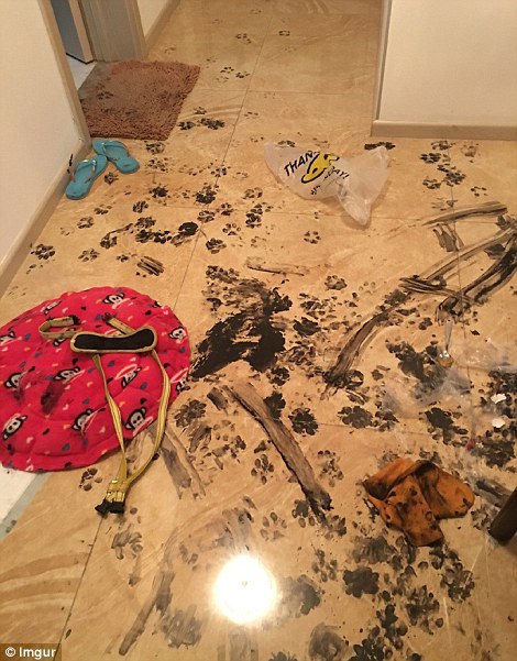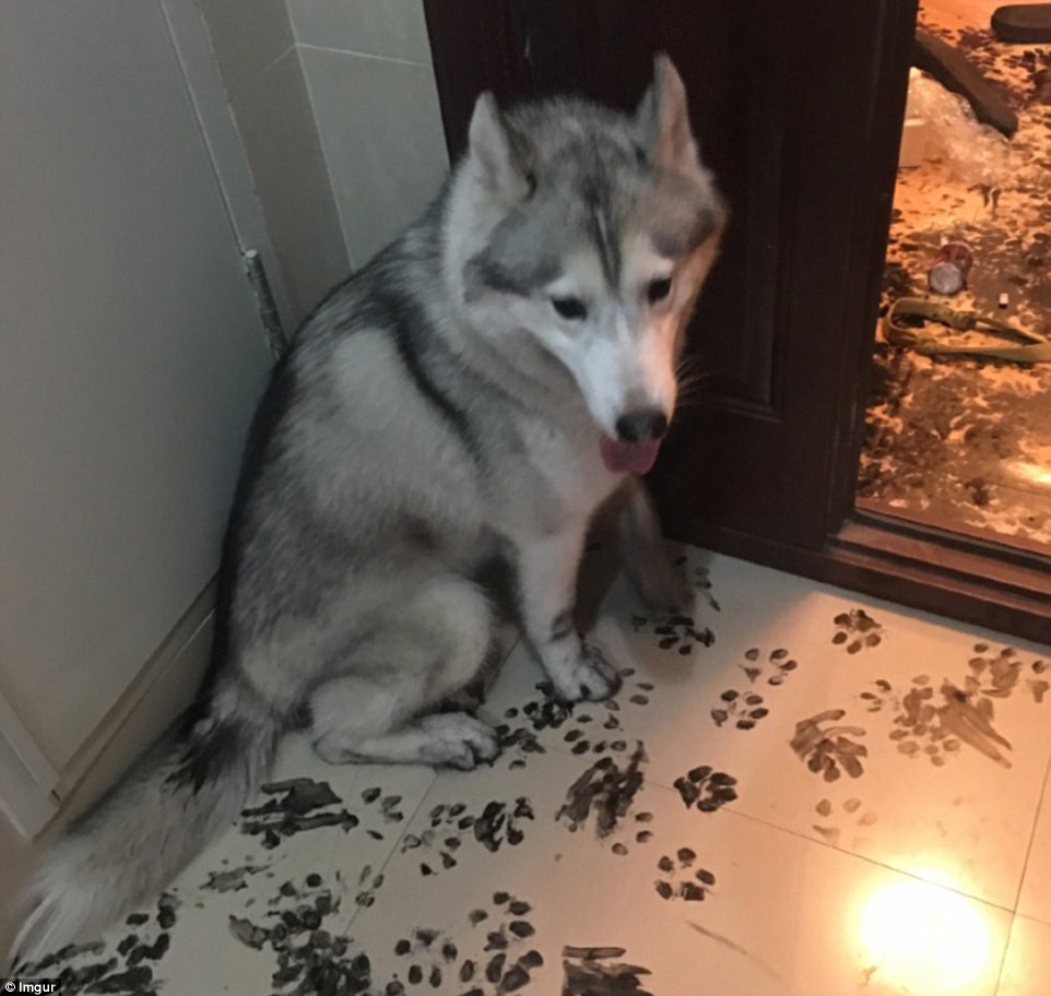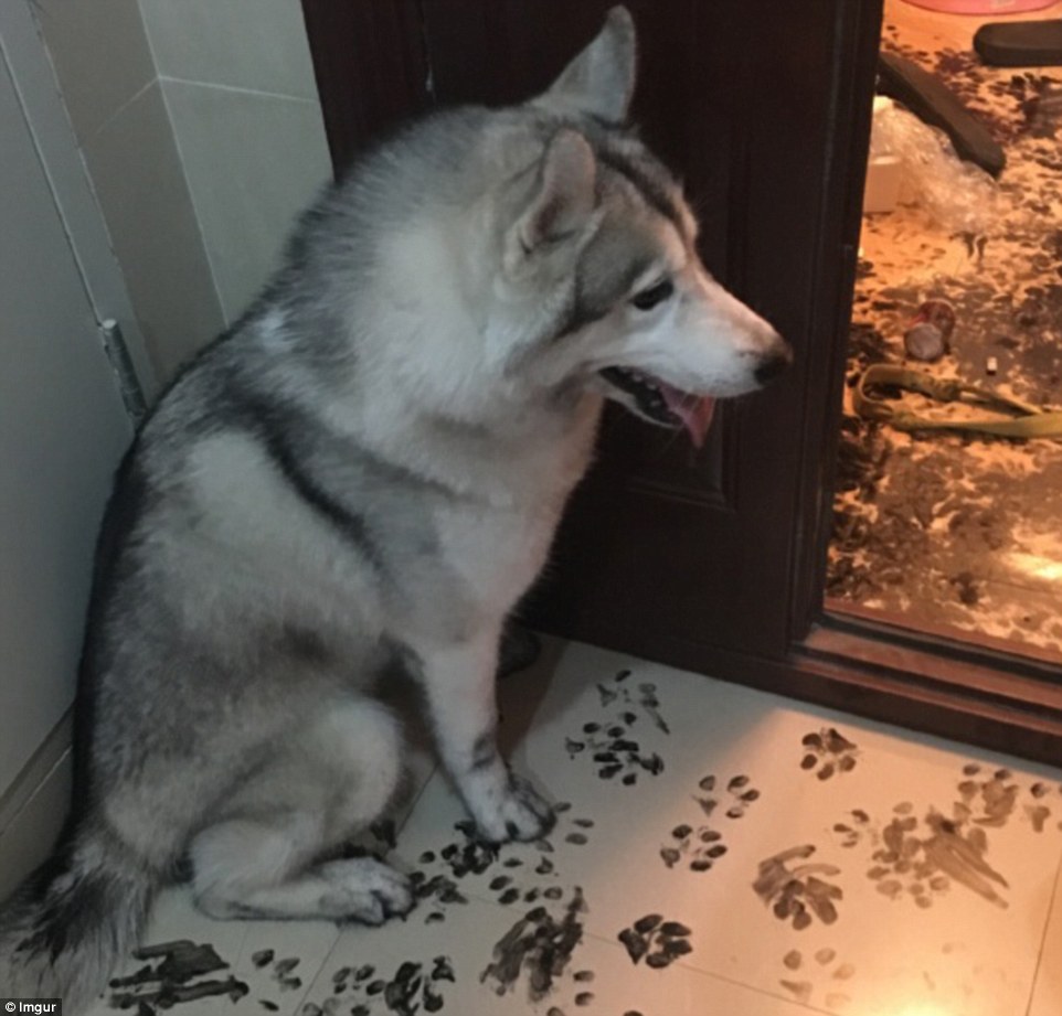 哈士奇或許在書房里翻到了主人練習(xí)書法用的墨汁并不小心打翻了,之后沒心沒肺的二哈踩著墨汁到處轉(zhuǎn)悠,房子的各個(gè)角落都留下了二哈烏黑的爪印。