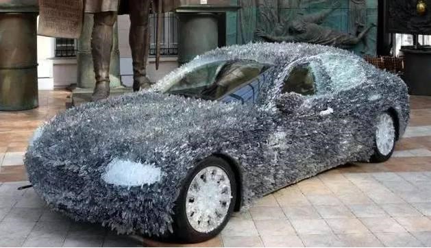 乍看上去,還以為車上長滿白毛,其實(shí)都是玻璃碴。這些插滿車身的玻璃的總重達(dá)到了8千克,如果您在街上看到了這樣的車,你會伸出手去摸摸嗎?分分鐘告訴你什么是白手去,紅手回。 (來源:每經(jīng)網(wǎng) )